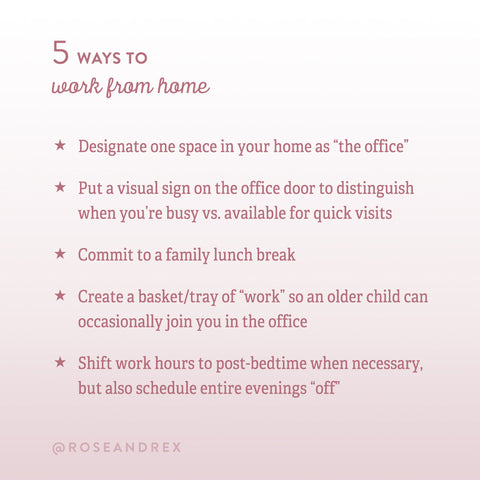 5. Shift hours to post-bedtime when necessary, but also schedule entire evenings off. Right now, the days feel long. The idea of shifting some work hours to post-bedtime probably sounds exhausting, but it may serve everyone well. I'm more present with my children during the day when I can rely on dedicated work time in the evening. Just be sure to schedule nights off, too!