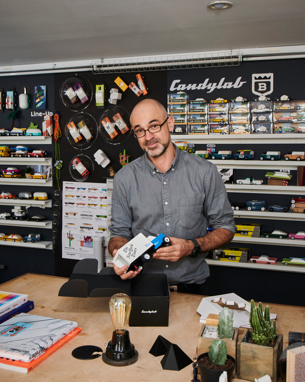 My wife and I created the initial seed idea around two concepts. First, that design-focused toys should be accessible, not luxury items. We all should be exposed to good design and thoughtful, keepsake products that encourage us to reduce the mountains of inexpensive plastic toys. Second, that the brand should reflect a shared interest. In my case it took the shape of toys and cars, both items that are dear to me! Lastly, we wanted it all to be wrapped in sense of wonderment, like a kid in a candy store, hence the name.
